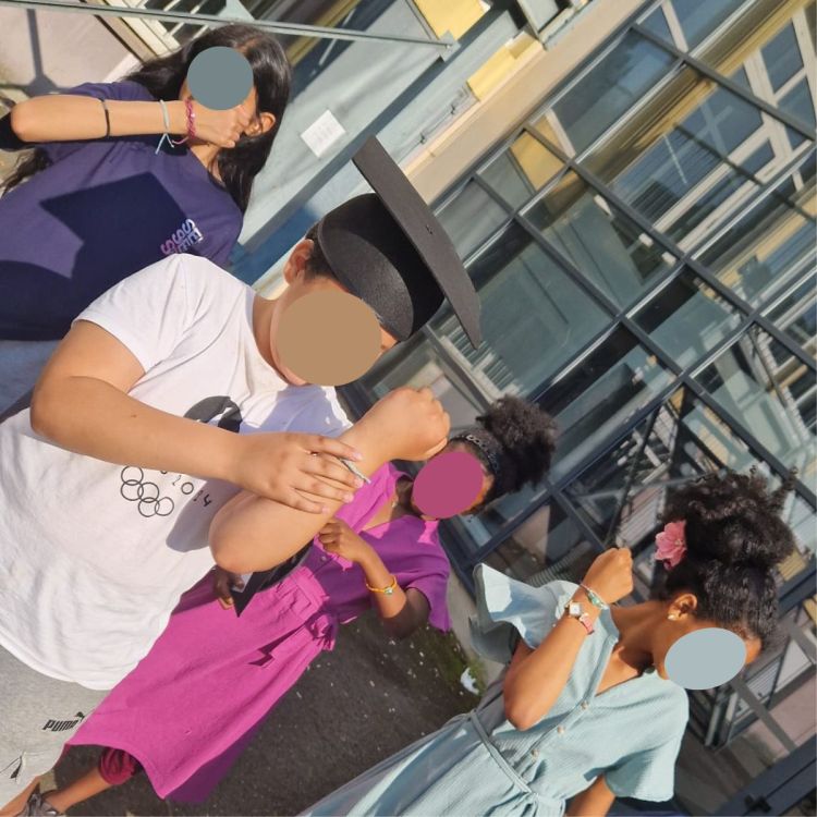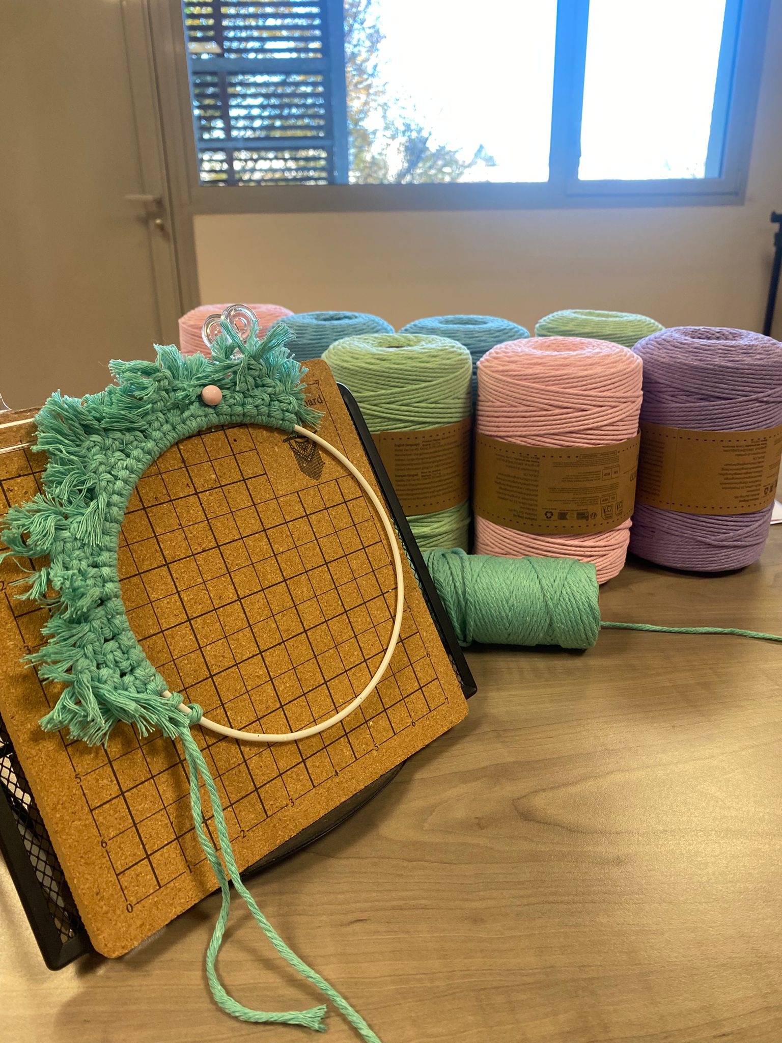 En juin 2025, Nouer Ensemble a animé deux ateliers de créations de bijoux en macramé pour les jeunes inscrits au CLAS (Contrat Local d’Accompagnement à la Scolarité) du Centre Culturel et Social des Résidences Bellevue.